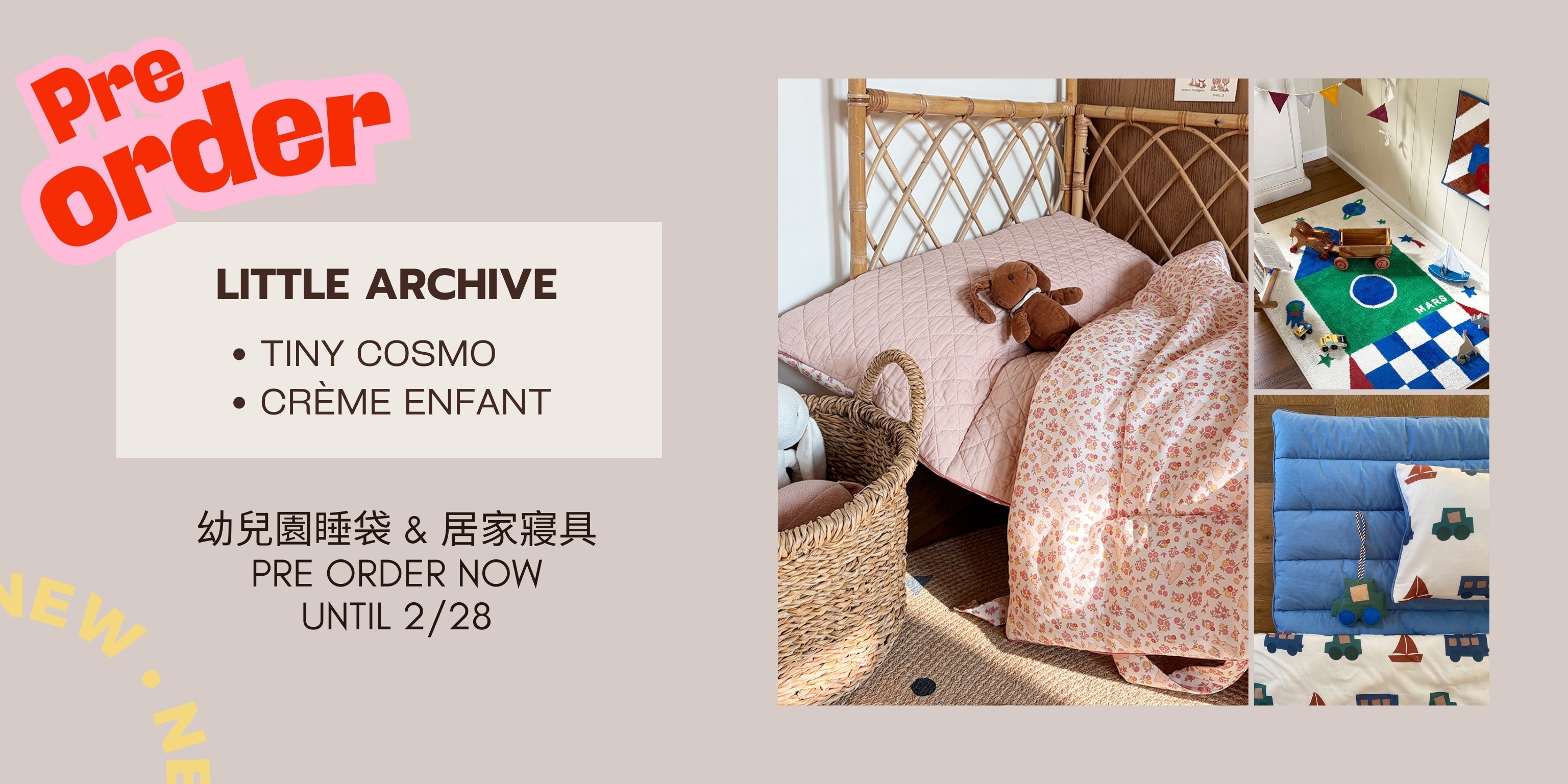 韓國大型百貨專櫃兒童寢具品牌Little Archive 旗下專為幼童設計的溫柔氣質幼兒園睡袋組