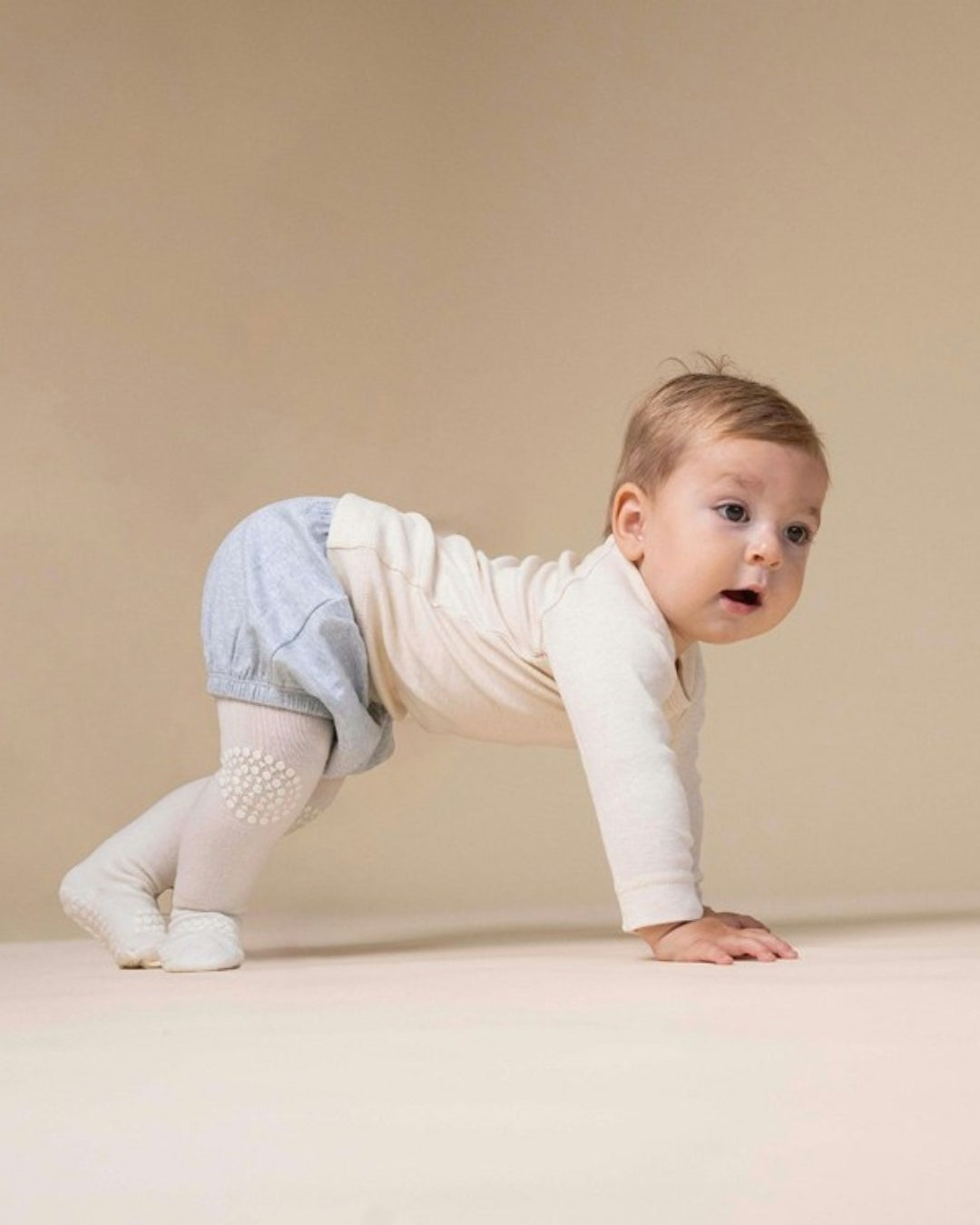 丹麥GoBabyGo 竹纖維爬行褲襪 - Off White ❘ 現貨尺寸: 6-12M & 12-18M