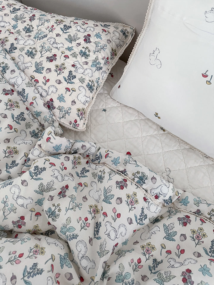 被子與枕套四周點綴白色蕾絲細節