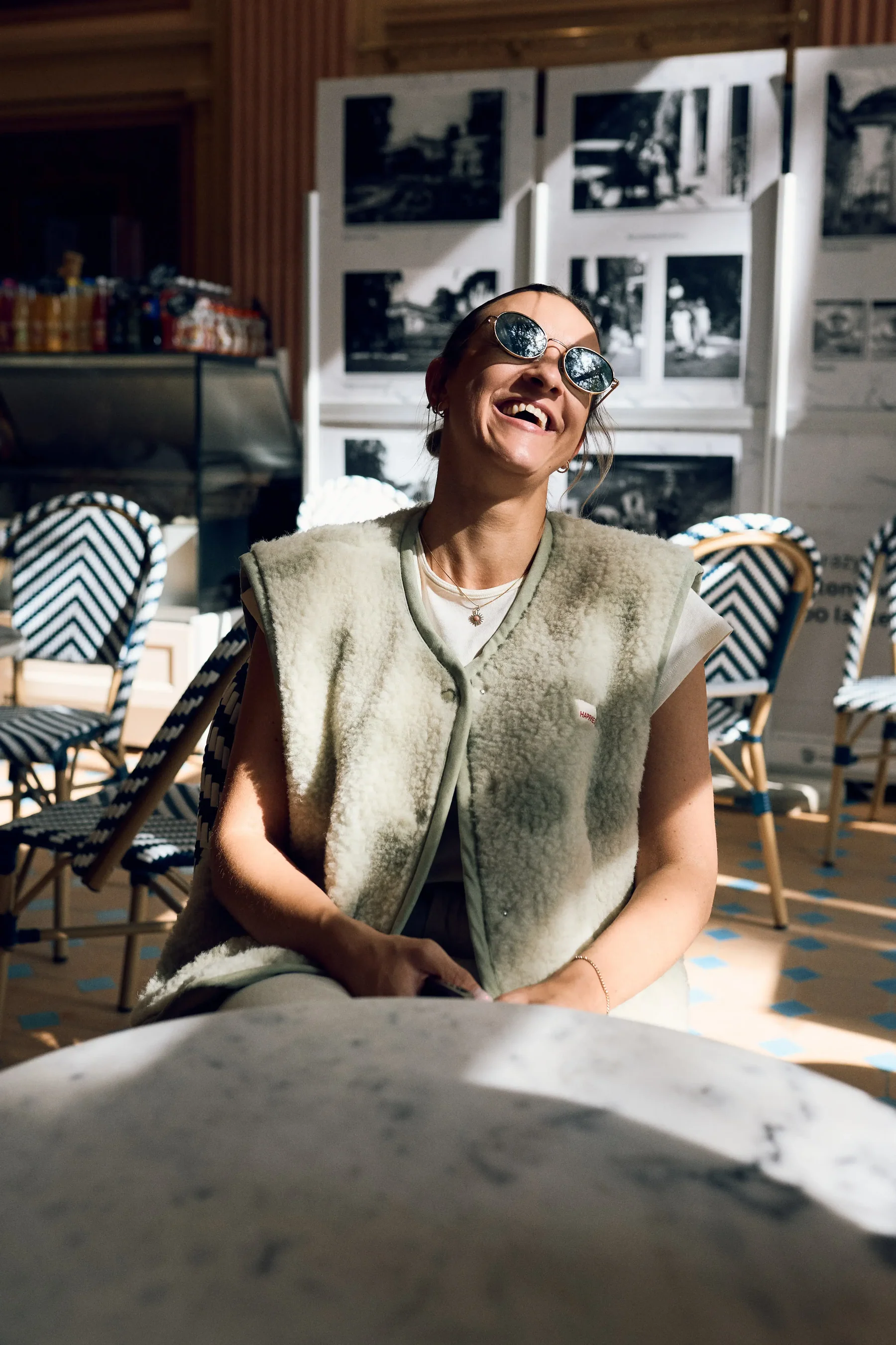 Oversized unisex vest with pockets and snap fastening. Made of soft merino wool, which has thermoregulatory properties - protects against cold while preventing overheating. Works well as an outer layer or an additional layer under a jacket. Easy to clean. Made in Poland.