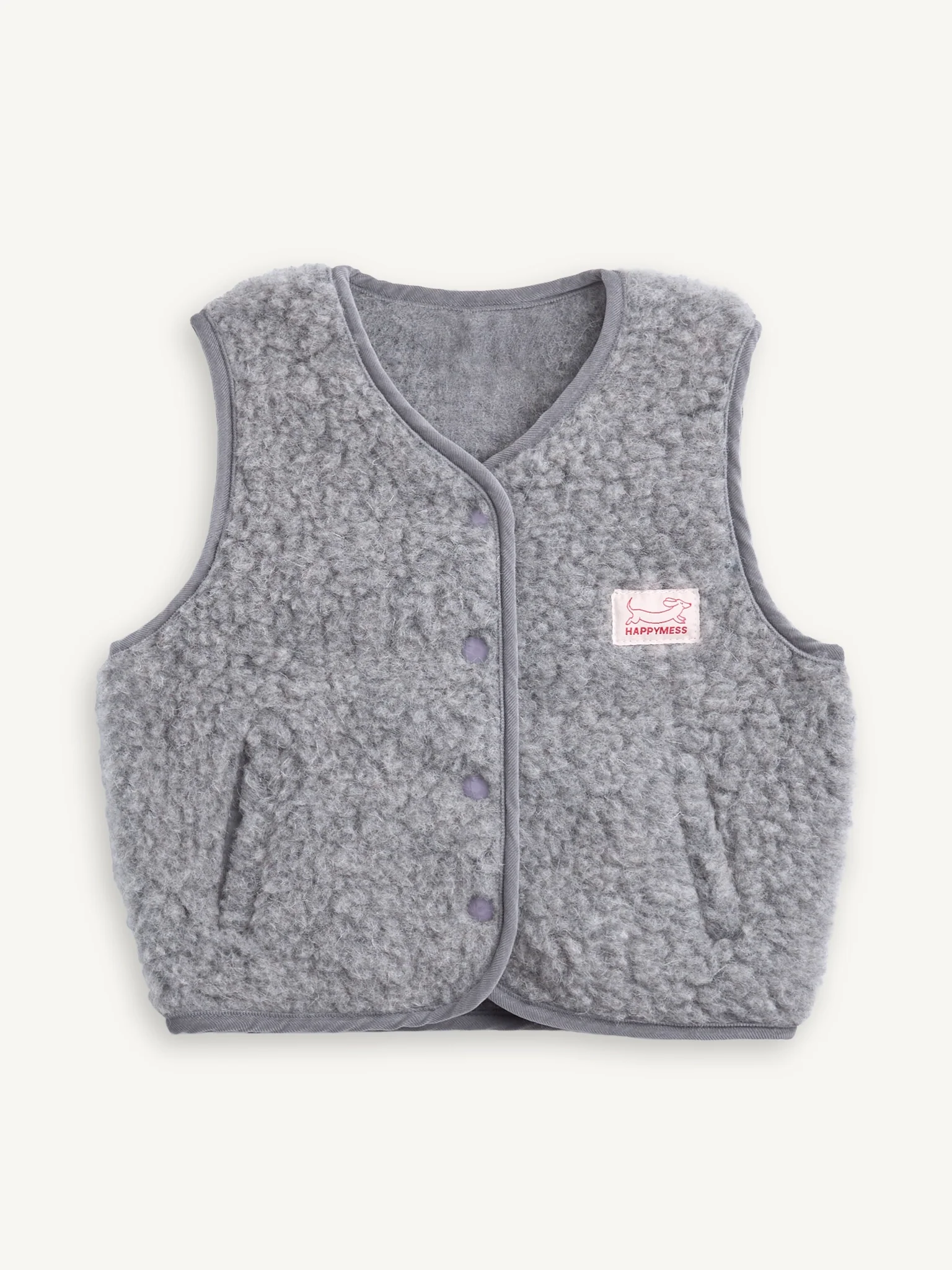 (預購) Happymess 100%美麗諾羊毛背心外套 - Kids in stone grey (1Y~12Y)