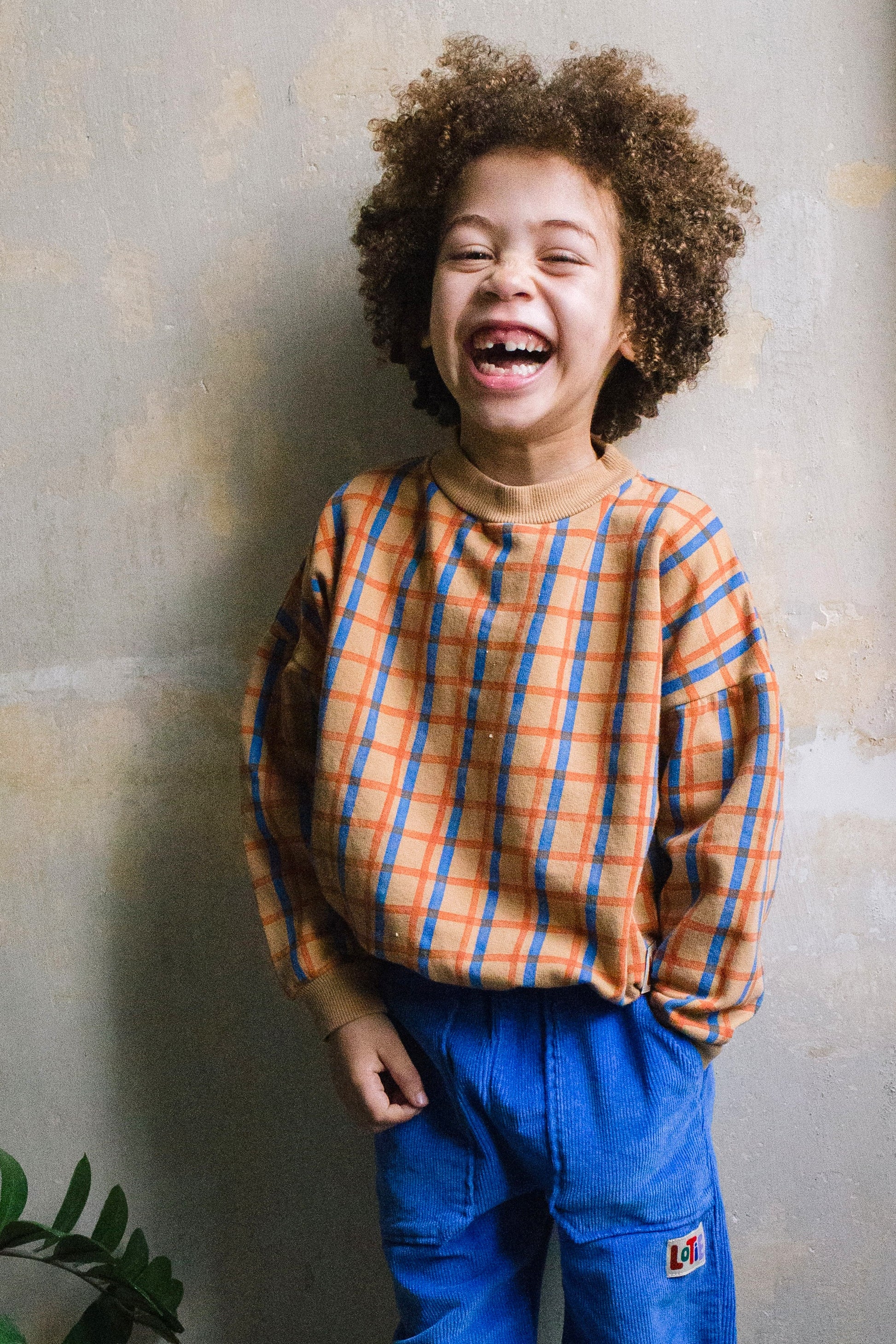 (預購)Lotiekids 有機棉大學T- PLAID PRINT TOASTED 2Y~9Y