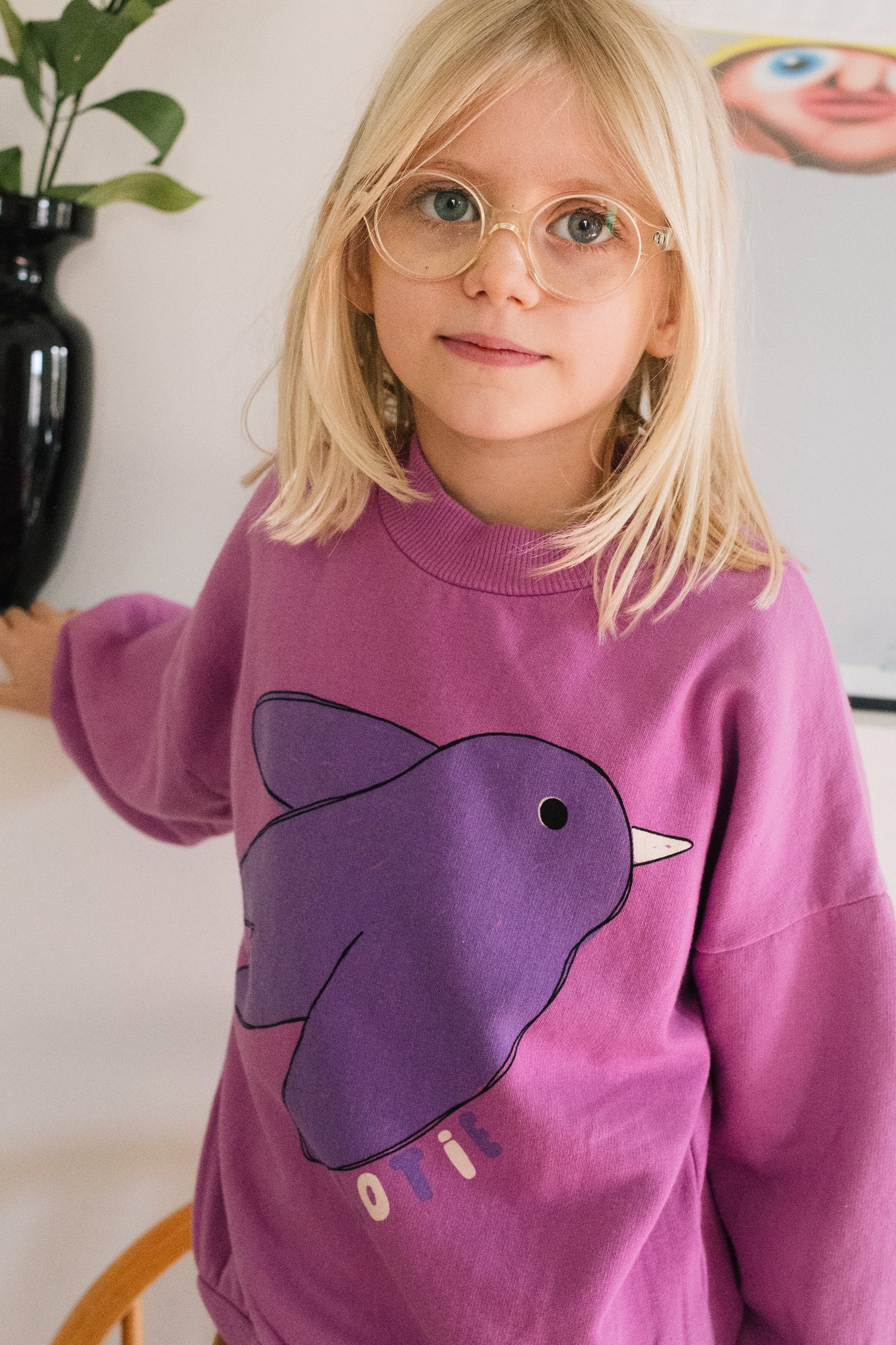 (預購)Lotiekids 有機棉大學T- FLOWING BIRD FUCSIA SWEATSHIRT 2Y~11Y