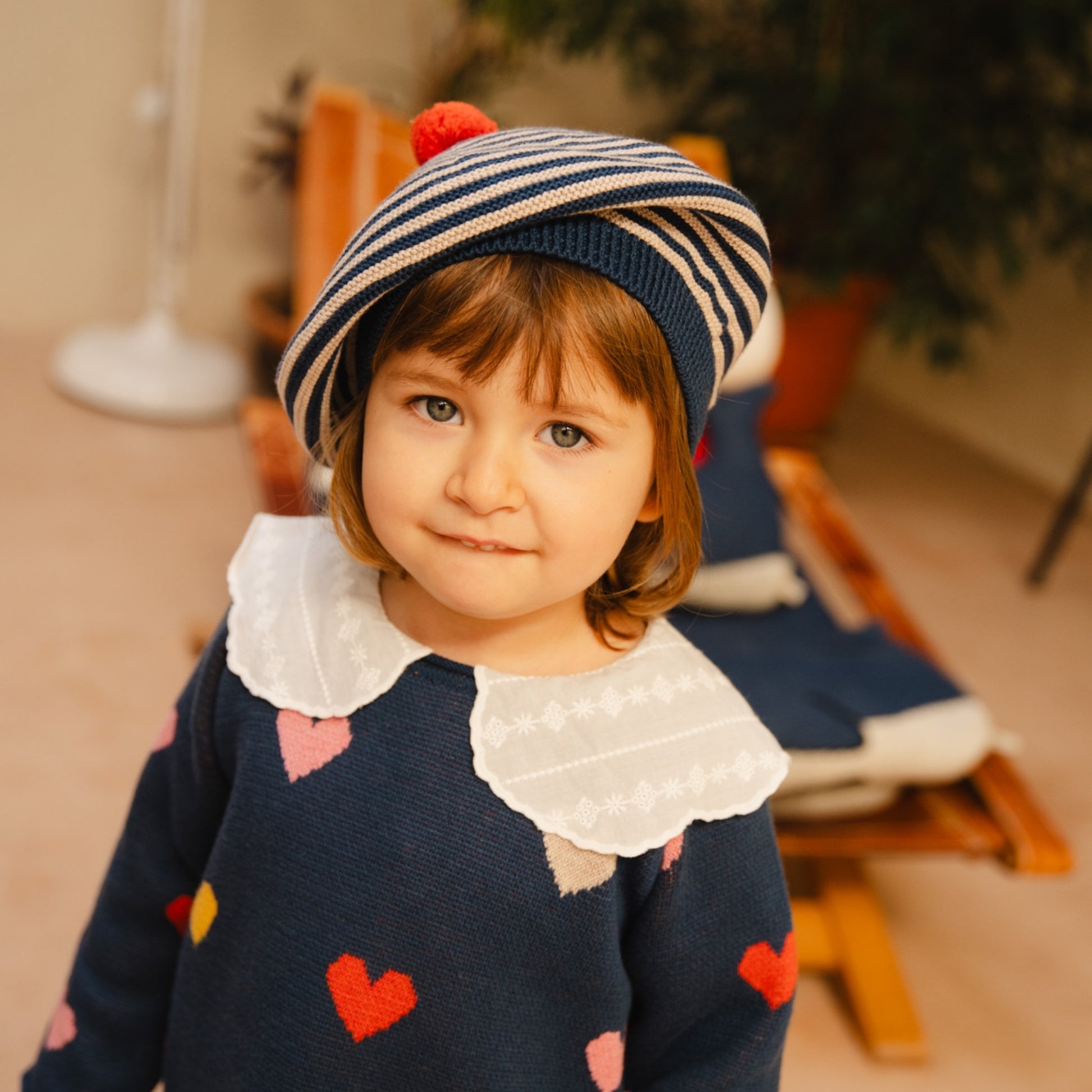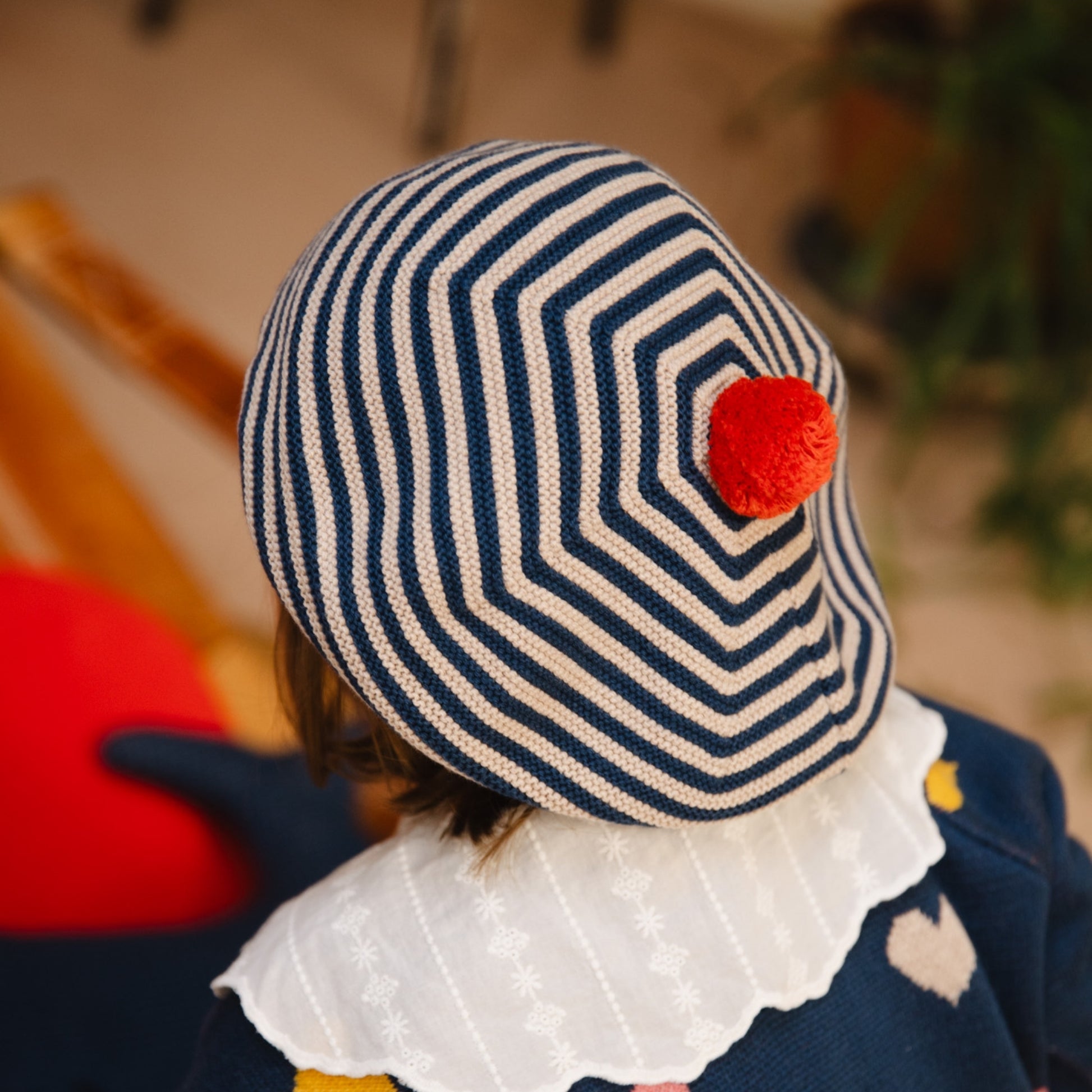 Bayiri 100%有機棉條紋貝雷帽 1-3Y& 3-6Y