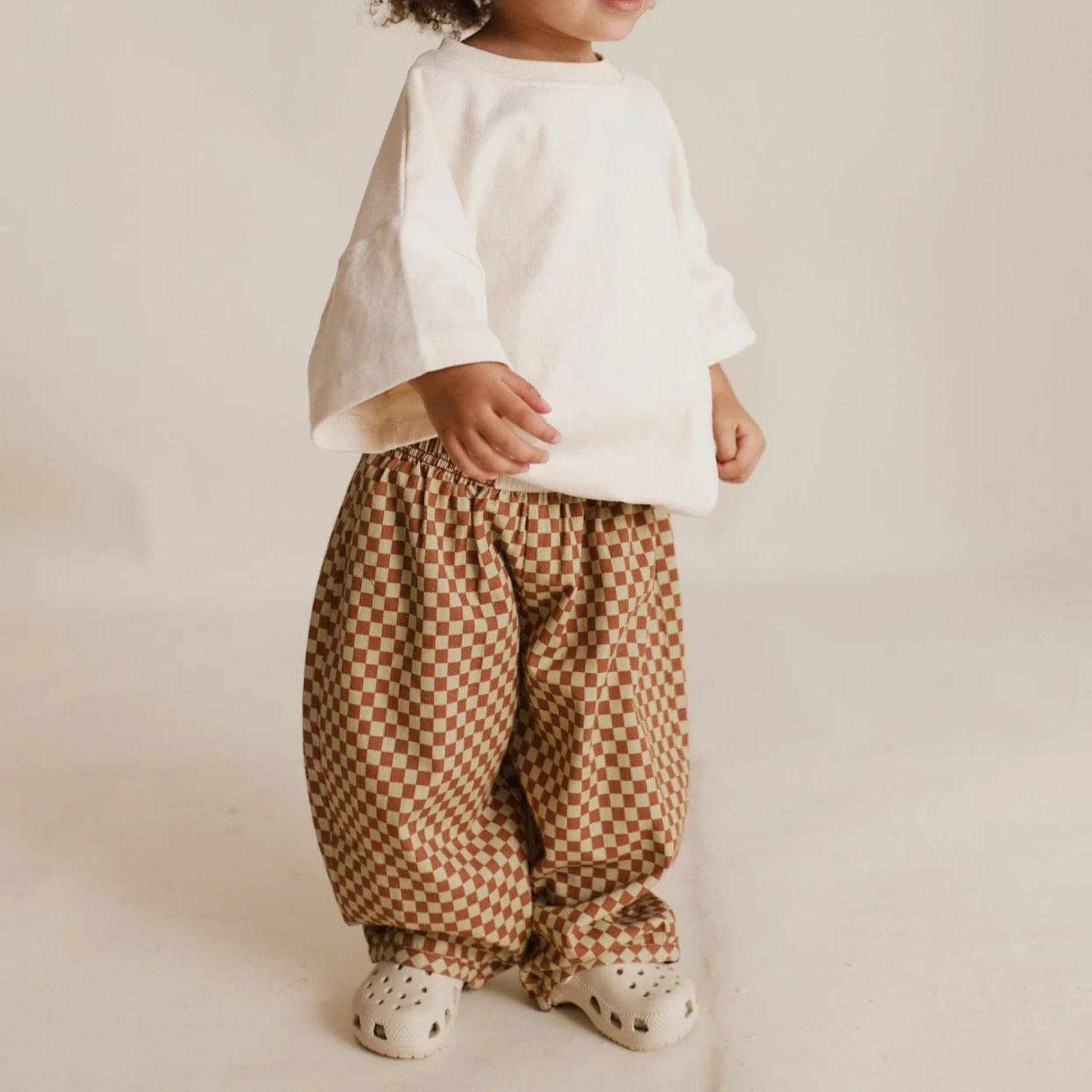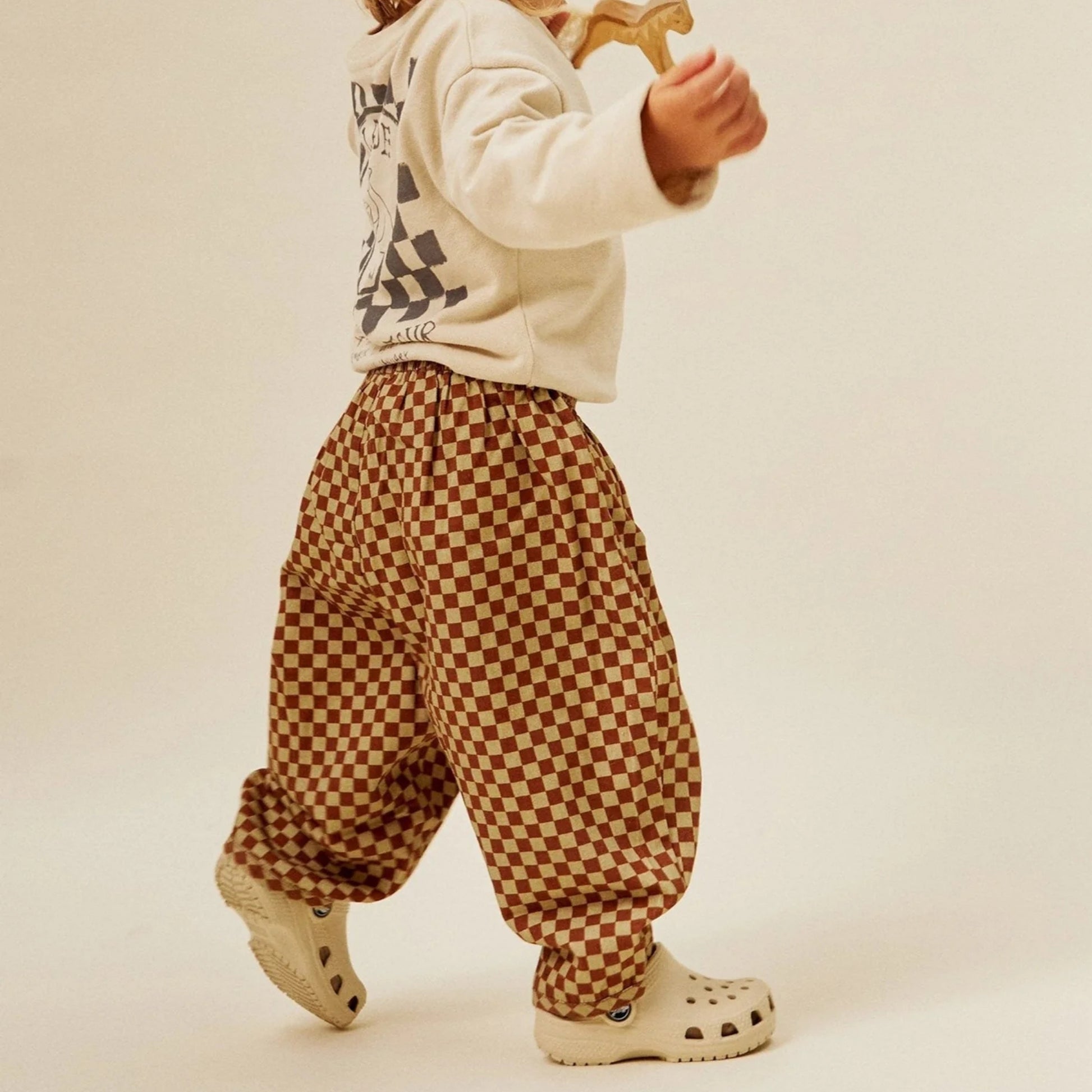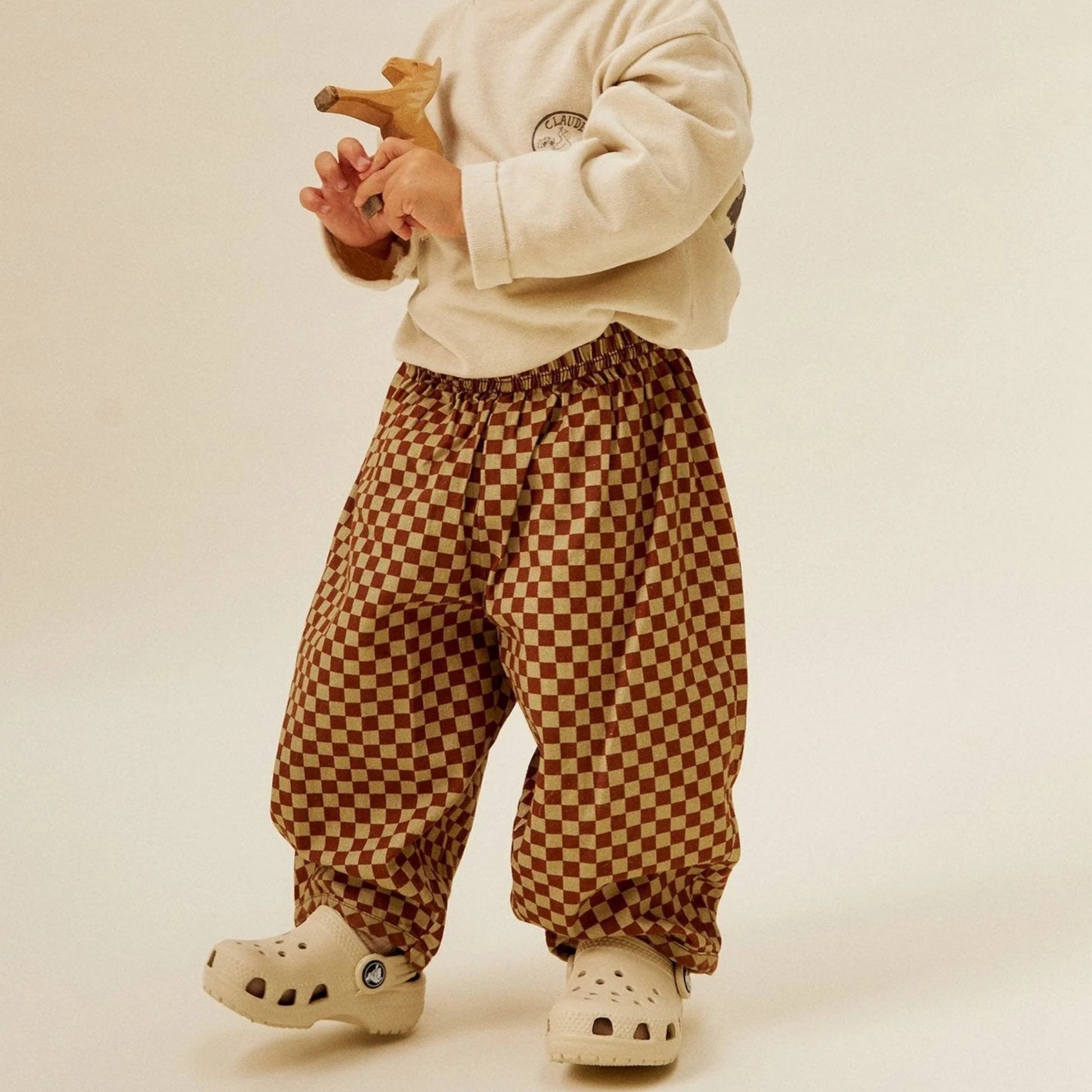 以柔和的鏽紅與鼠尾草米色交織出棋盤格圖案