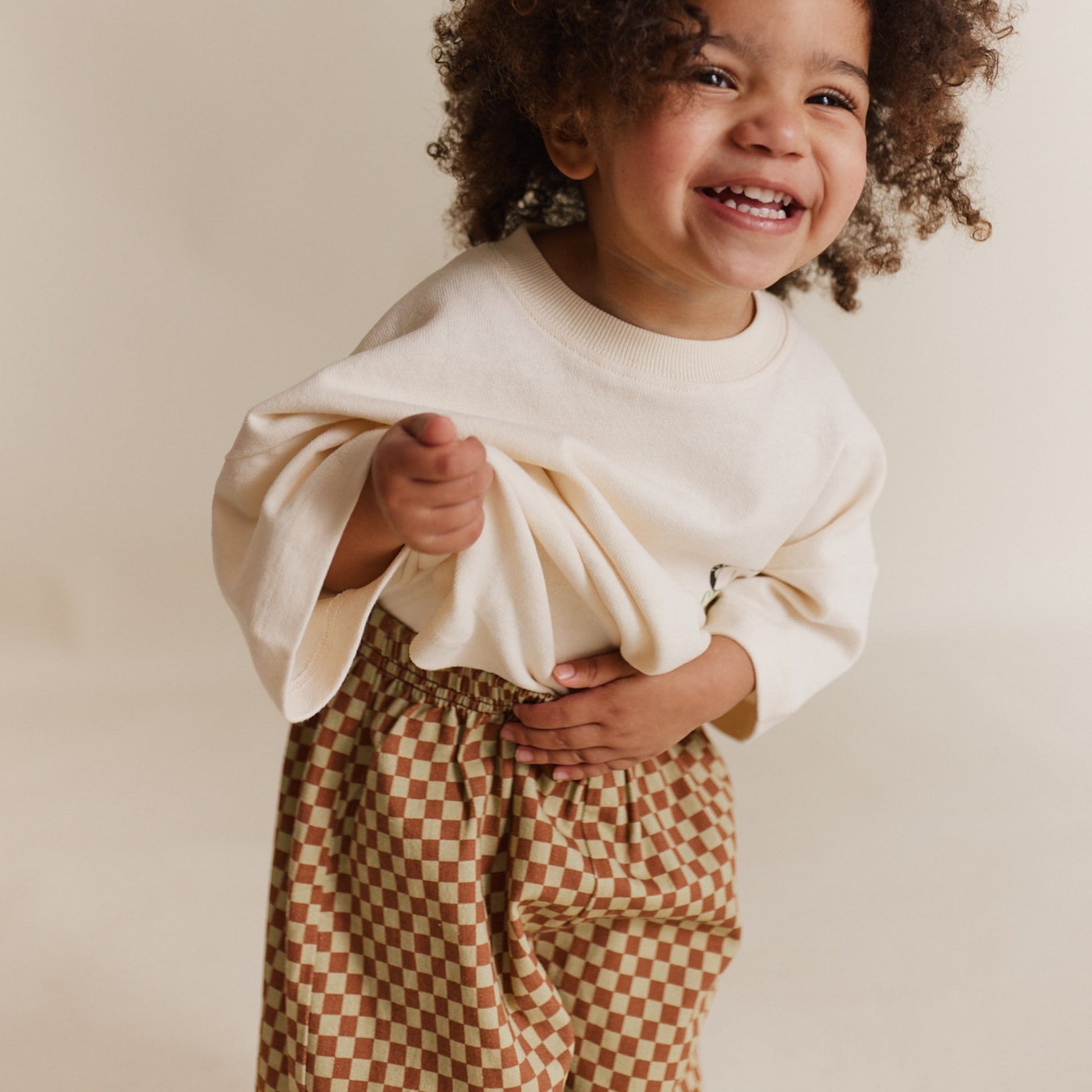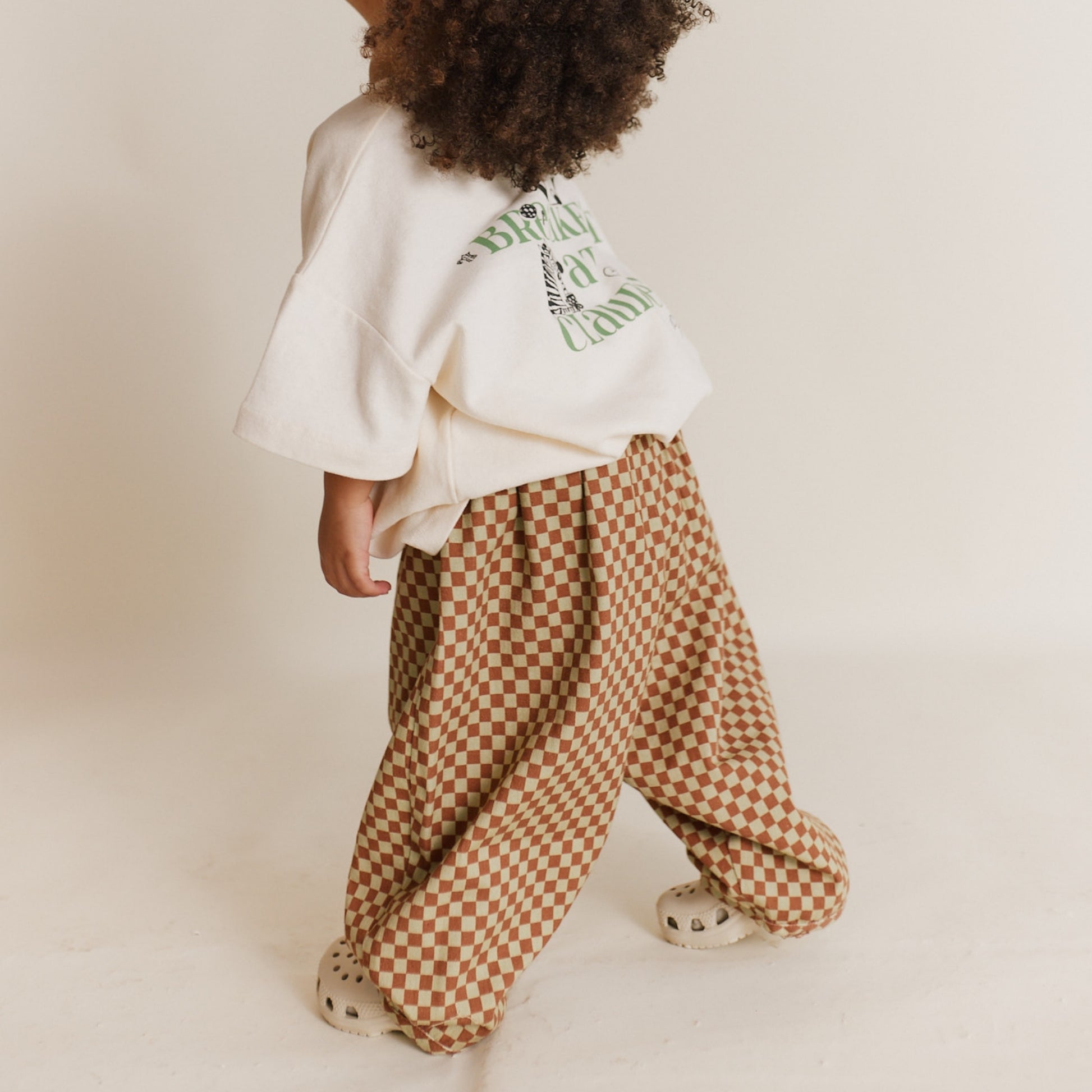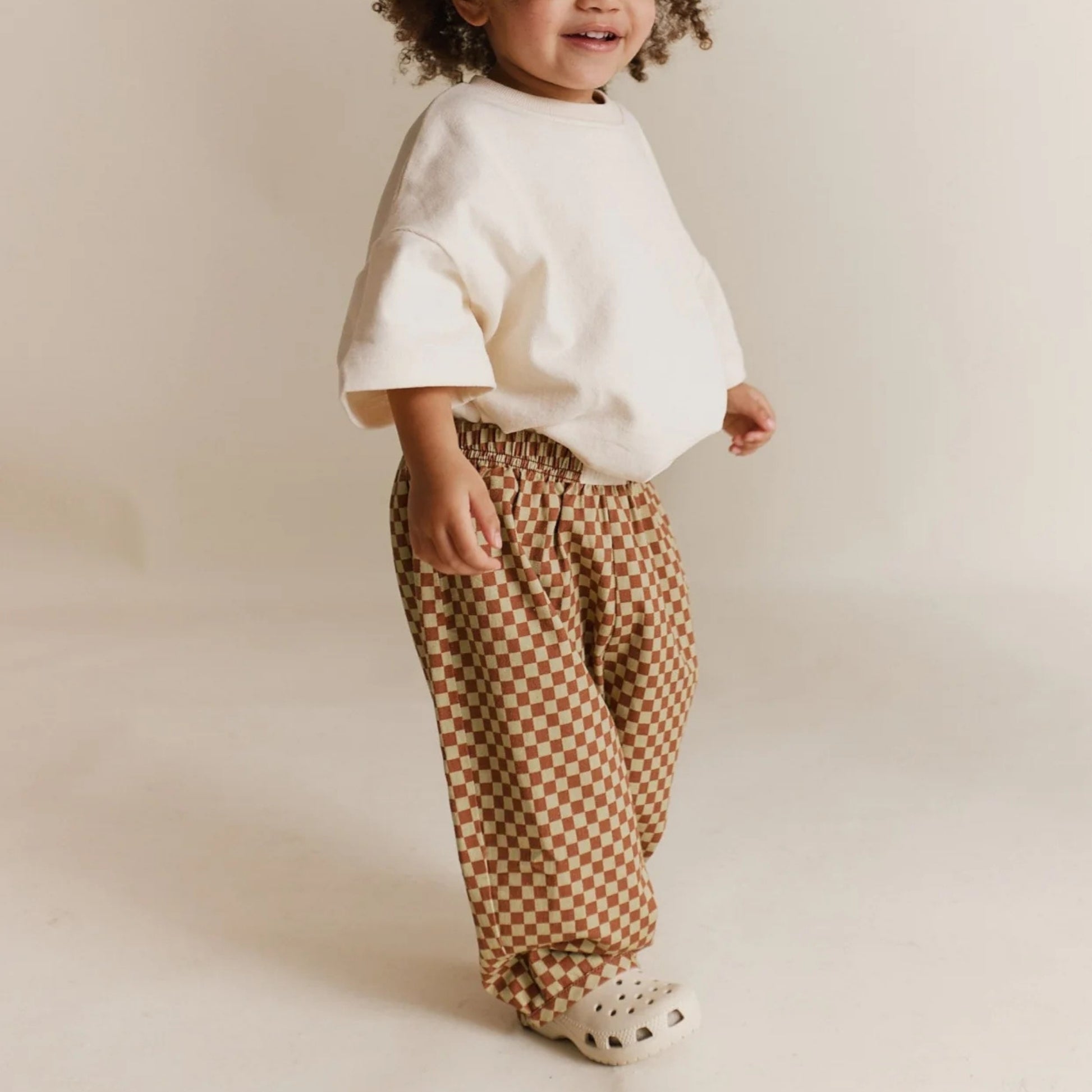 以柔和的鏽紅與鼠尾草米色交織出棋盤格圖案