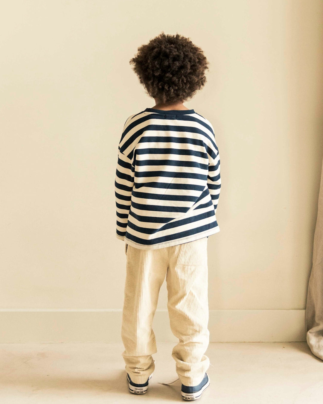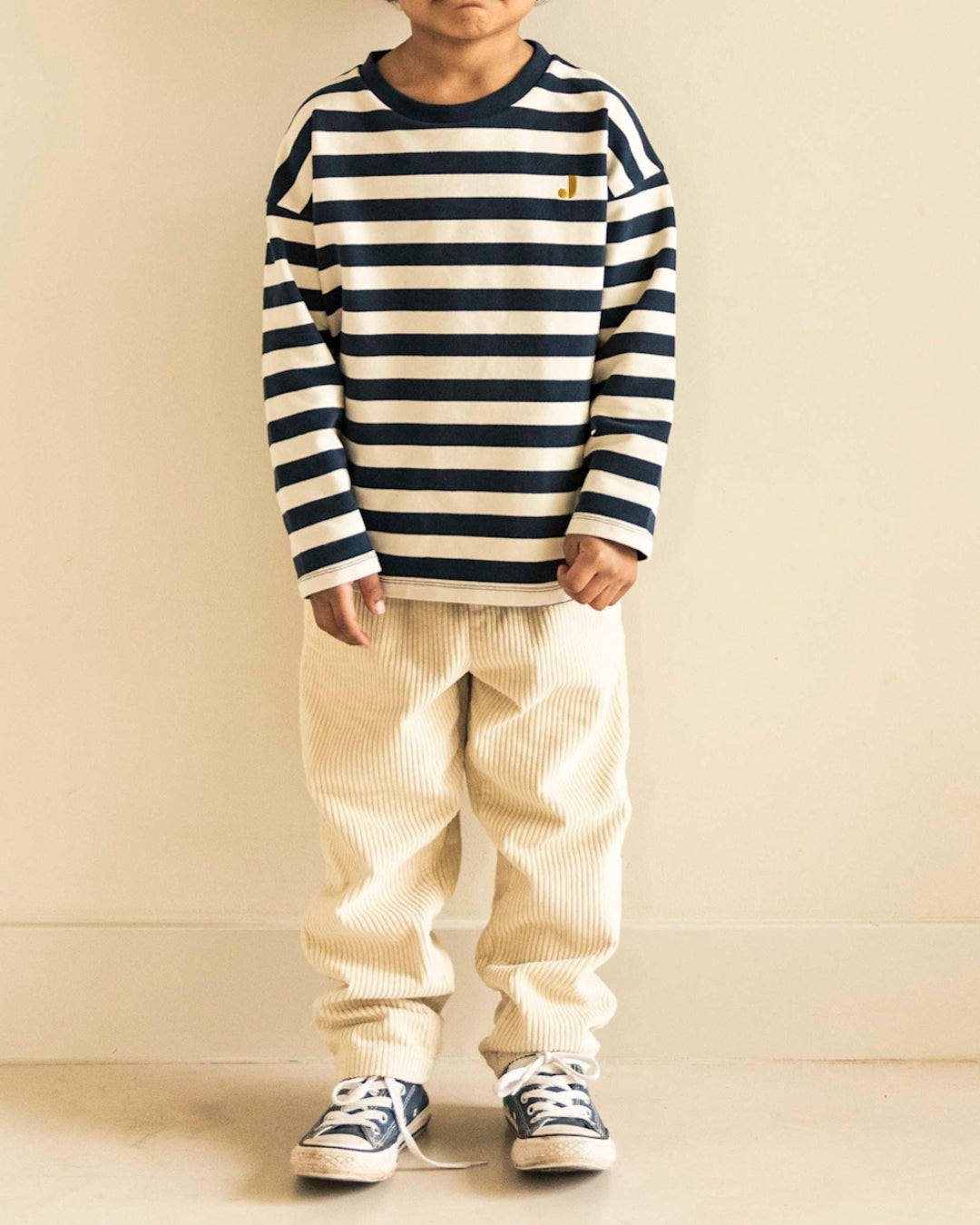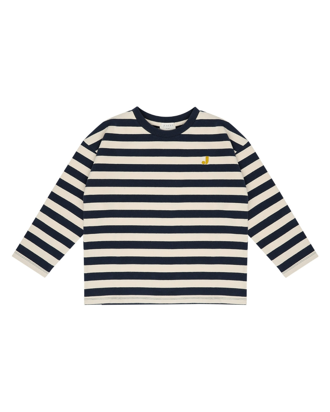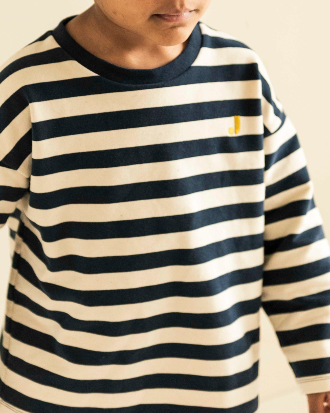 Jenest 100%有機棉寬版條紋長袖上衣(深藍/米白)