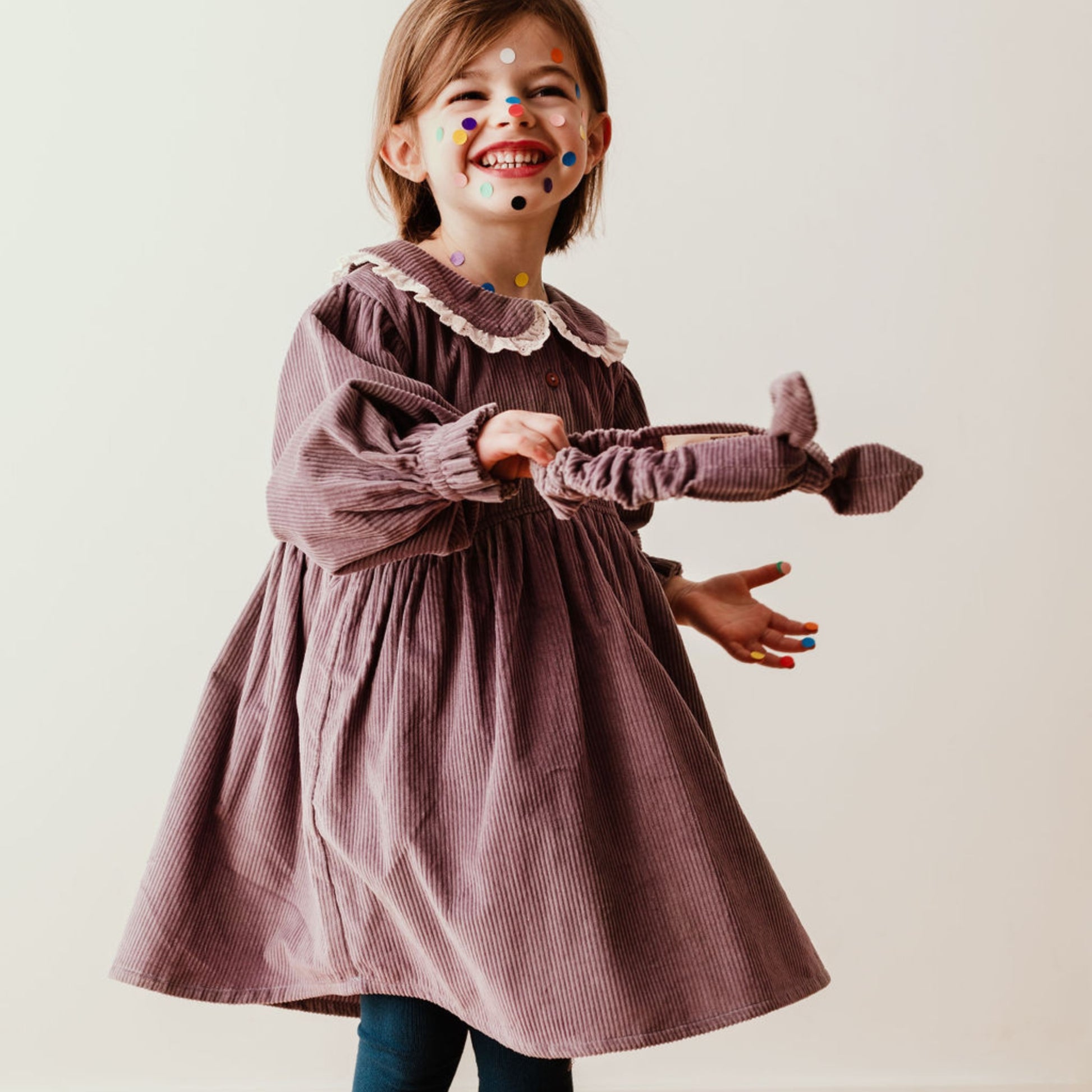 Les Petites Choses 純棉燈芯絨法式洋裝 - Mauve 4Y & 6Y