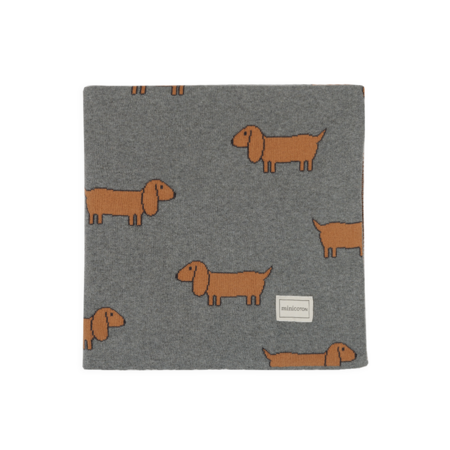 Minicoton 100%有機棉蓋毯 - Bestie小臘腸 深灰