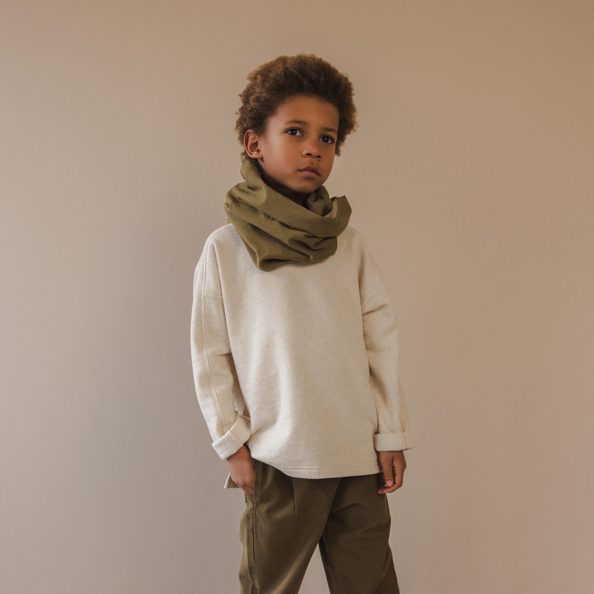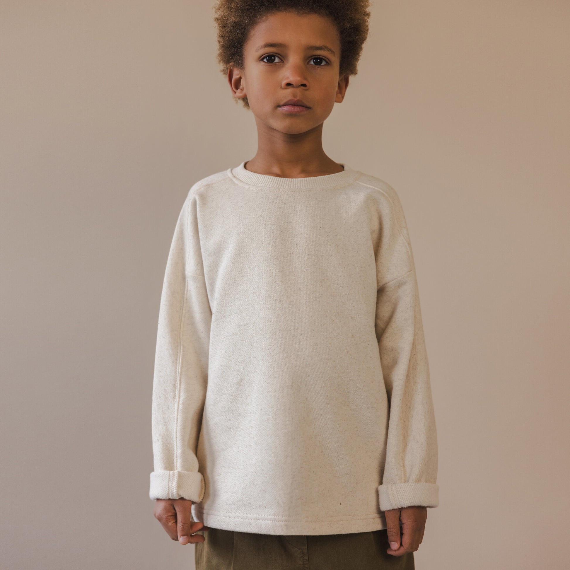 這款大學T使用95% 有機棉 + 5% 亞麻 製成