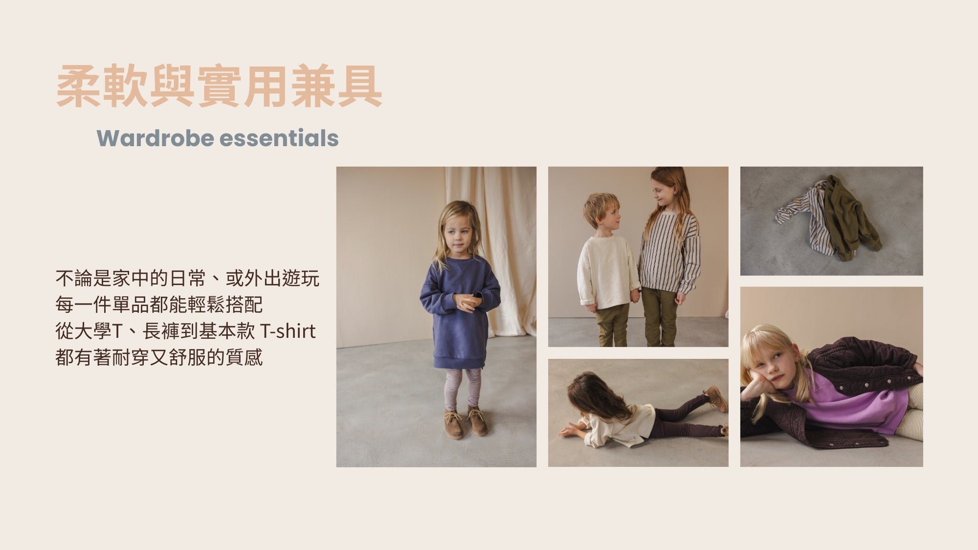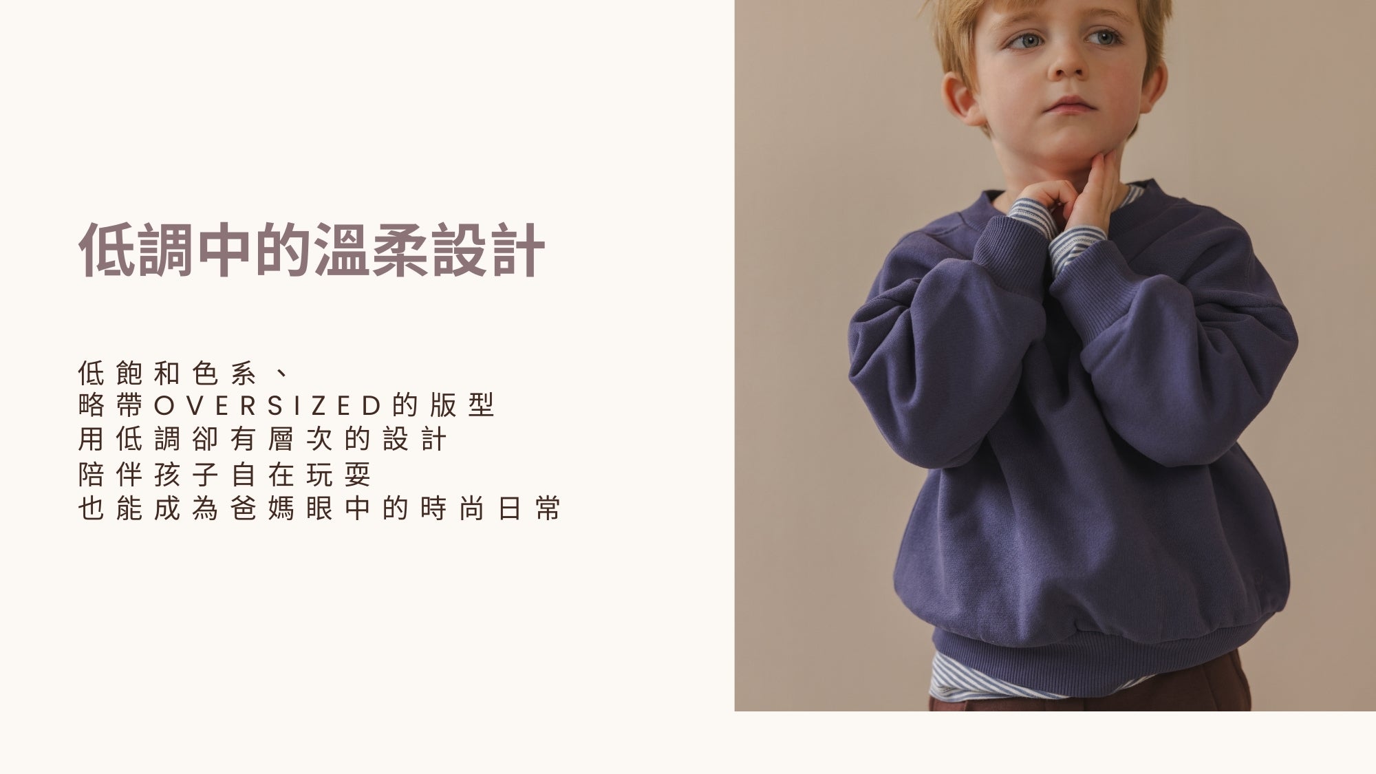 更喜歡讓孩子穿上柔和且低調的顏色,讓孩子自由自在地探索世界,展現真實的自己!