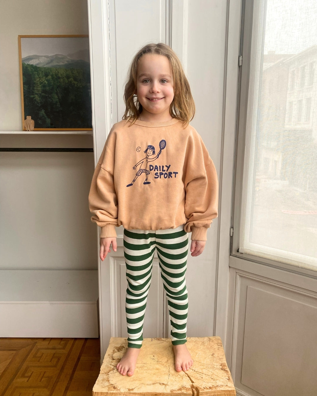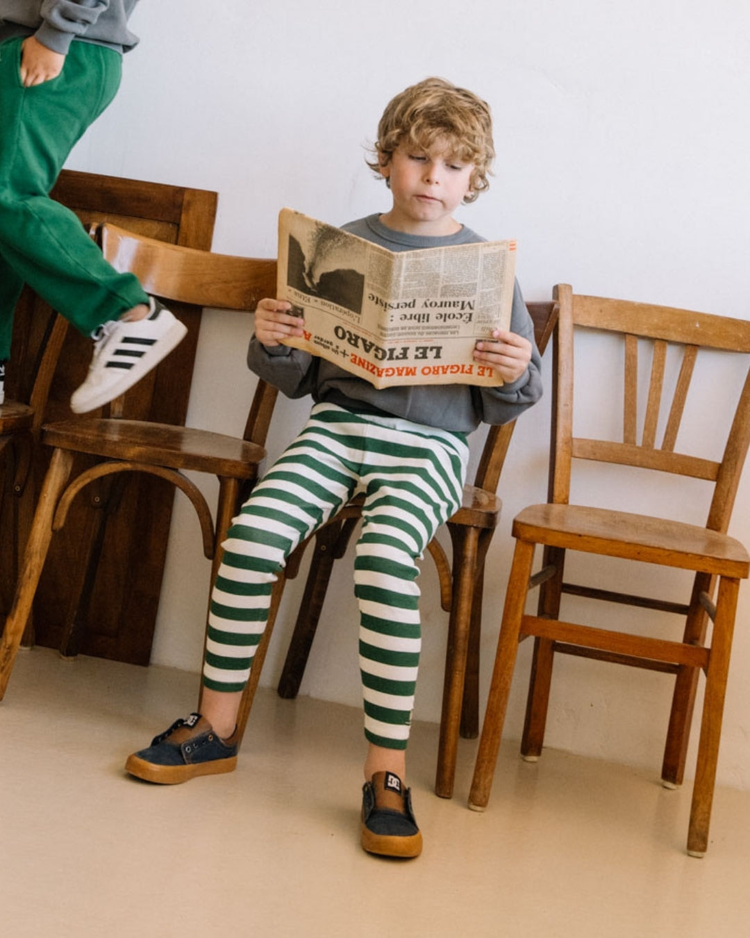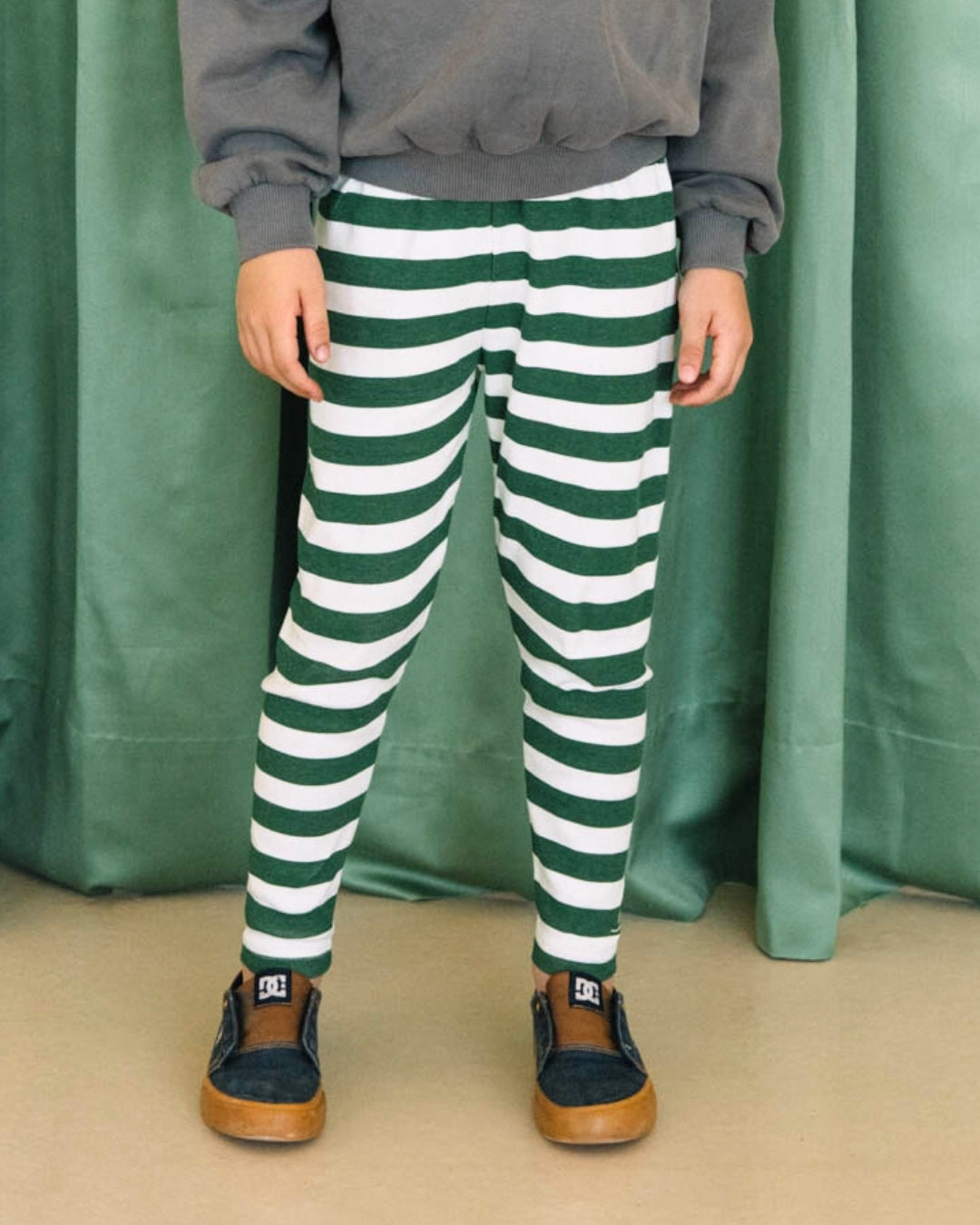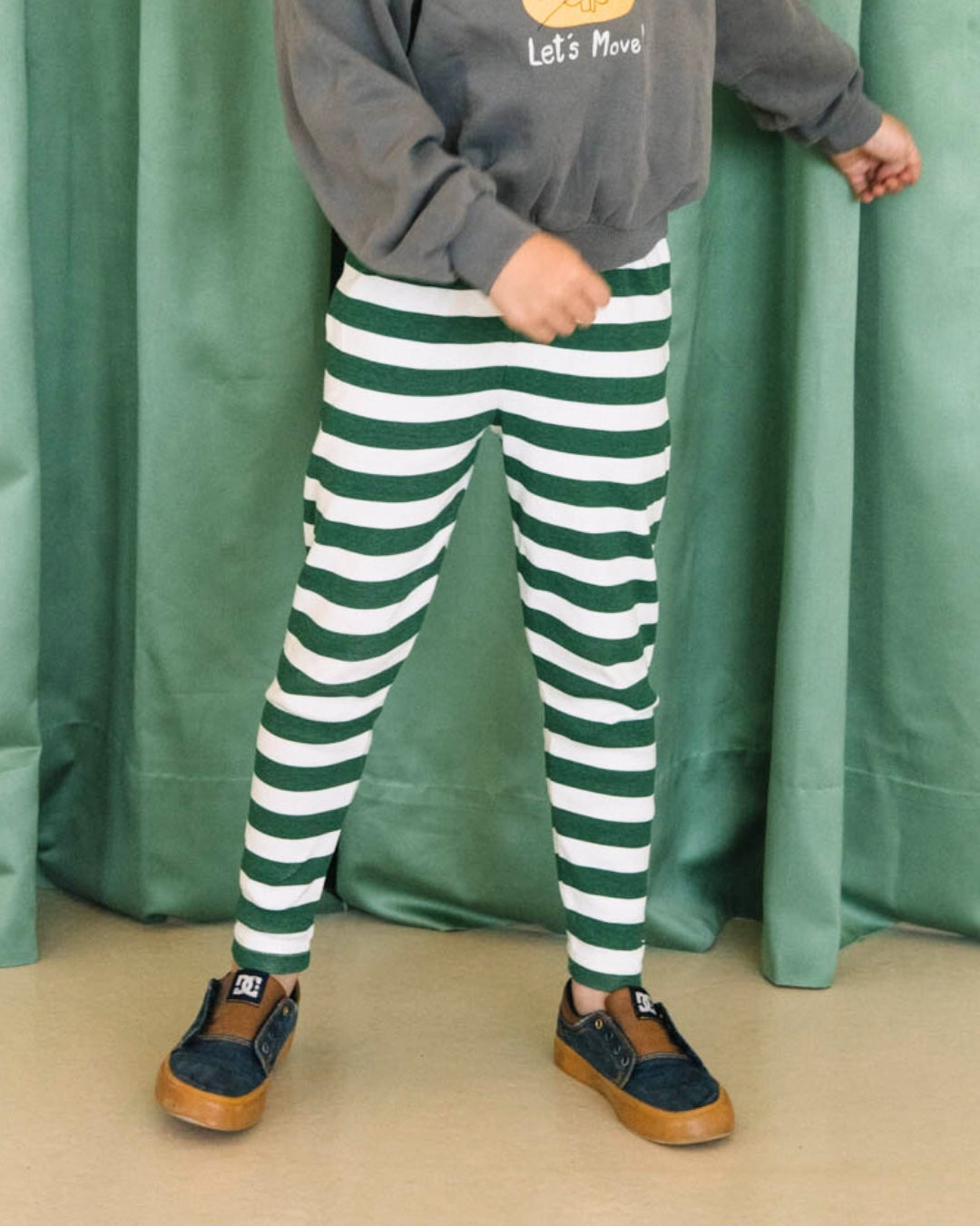We are kids - 100%有機棉窄版綠色條紋長褲 2-3Y & 4-5Y